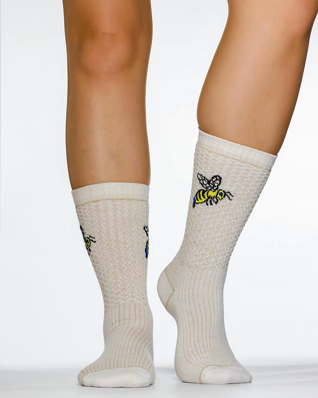 Bee More: 61% cotton, 33% polyamide, 3% metallized fibers, 3% elastane