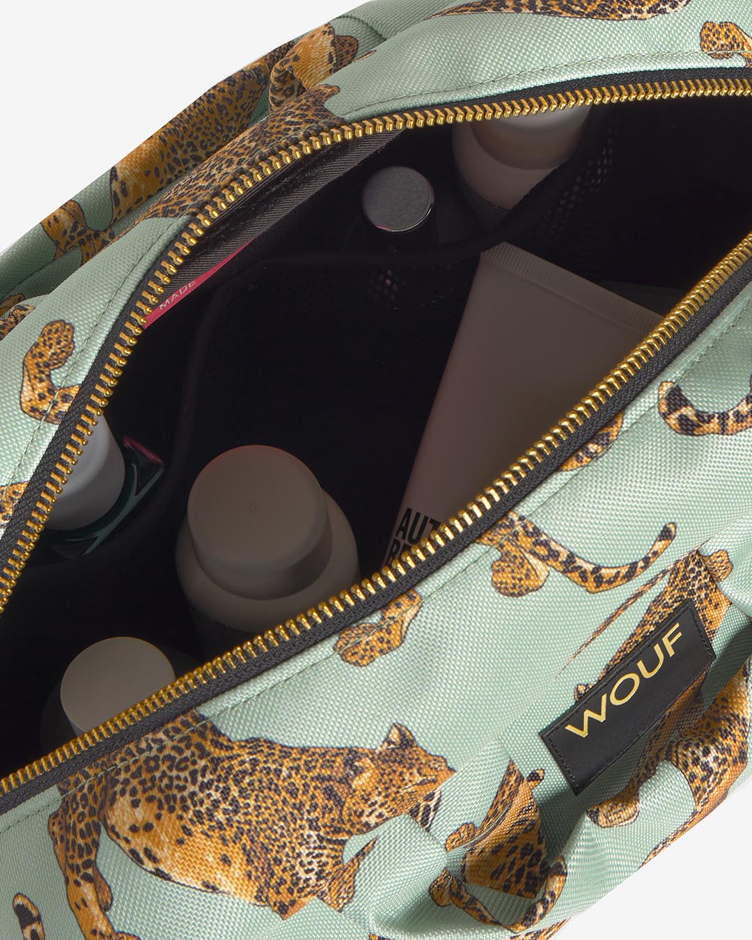 Emerald Leopard Toiletry Bag je edinstvena in praktična toaletna torba blagovne znamke Wouf. Torba je izdelana iz kakovostnega materiala in ponuja dovolj prostora za shranjevanje vaših kozmetičnih izdelkov in drugih predmetov, ki jih potrebujete na poti. Kompaktna in priročna zasnova torbice omogoča enostavno prenašanje, hkrati pa zagotavlja, da bodo vaše toaletne potrebščine varne in organizirane.